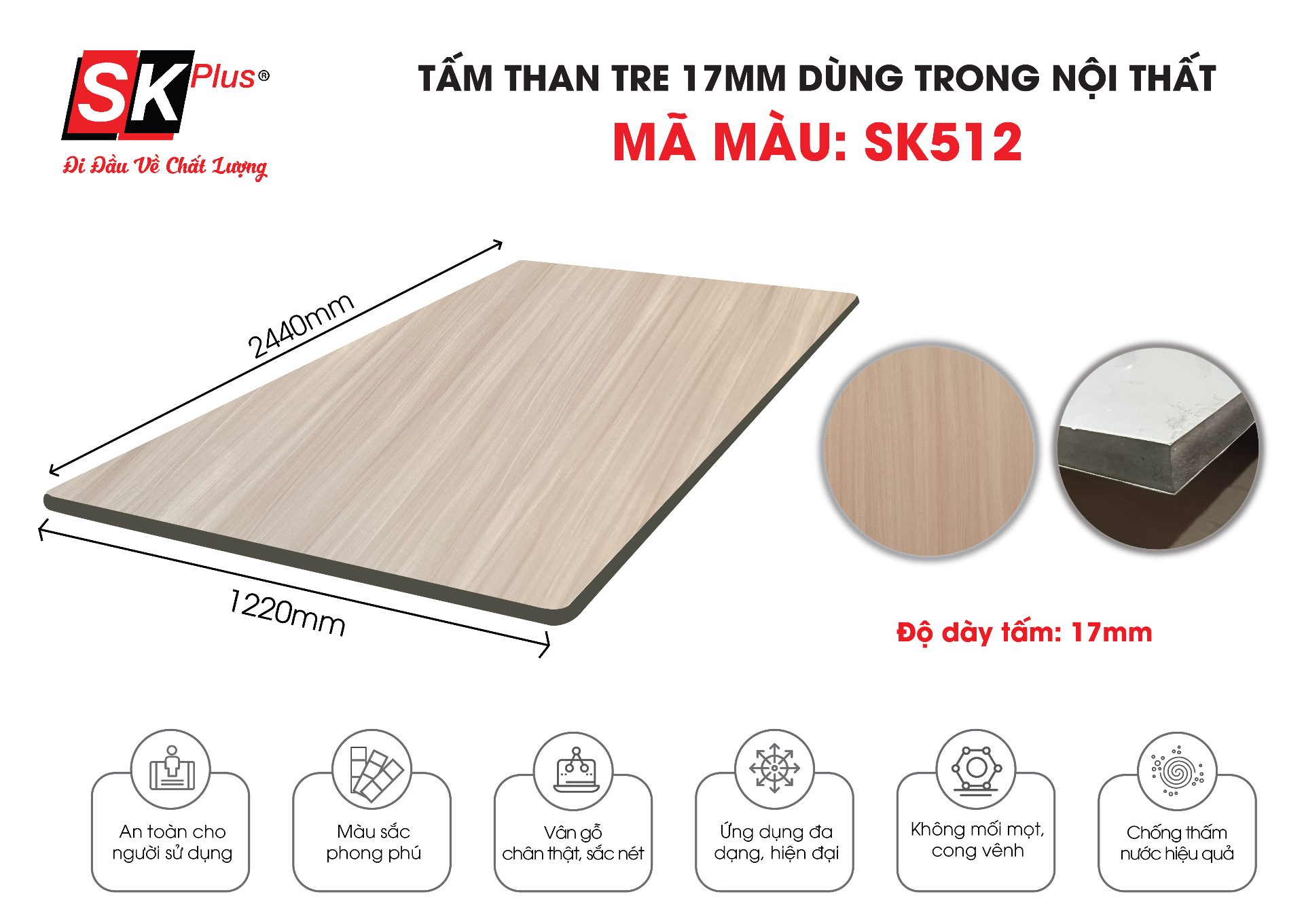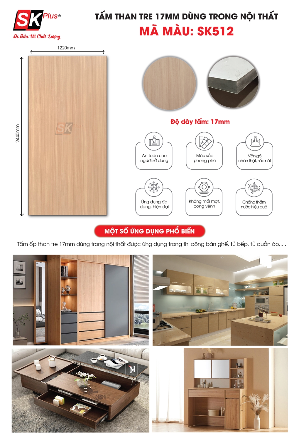 • Đặc điểm: Dẻo dai, bền chắc, chống trầy xước, chống mối mọt, dễ dàng vệ sinh.